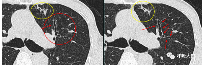 树芽征,即CT上形似树芽的征象,是由于小气道扩张,里面充满脓液、黏液、肉芽肿或炎性细胞,从而形成的。